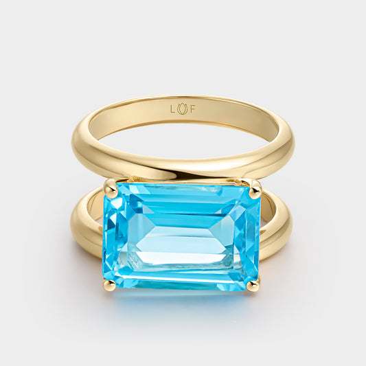 SORTIJA ORO AMARILLO 18K DOBLE CUERPO TOPACIO SWISS OCTOGONAL