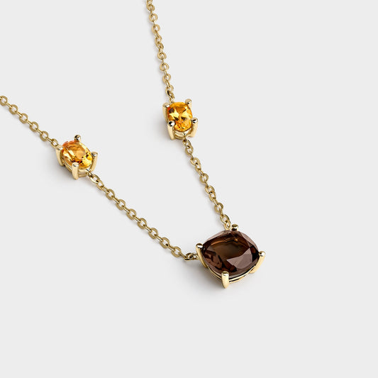 COLLAR ORO AMARILLO 18K CUARZO FUMÉ CUSHION Y CITRINOS OVALES