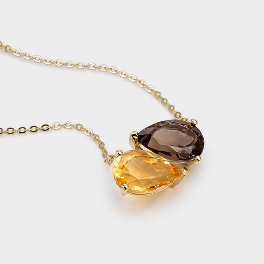 COLLAR ORO AMARILLO 18K CUARZO FUMÉ Y CITRINO PERA