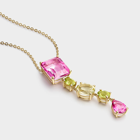 COLLAR ORO AMARILLO 18K TOPACIO ROSA, PERIDOTO, CUARZO LIMÓN Y TOPACIO ROSA
