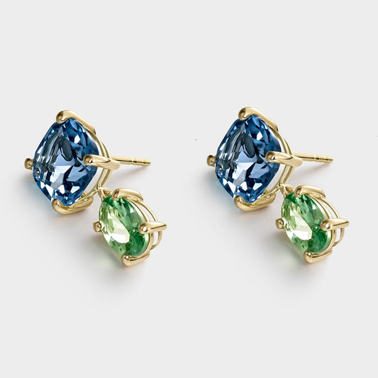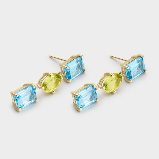 PEDIENTES ORO AMARILLO 18K TOPACIO SWISS Y PERIDOTOS CUSHION