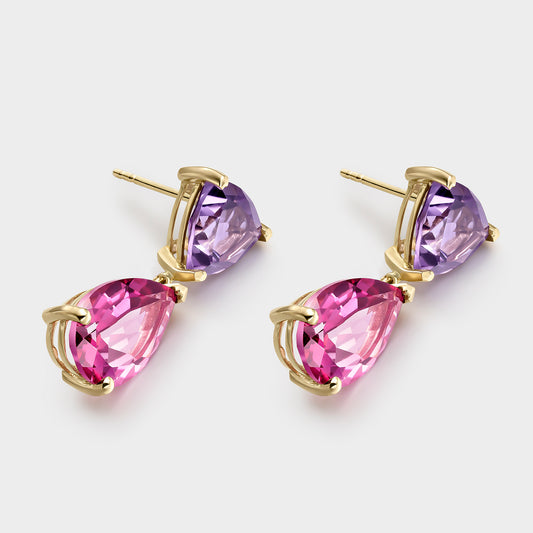 PENDIENTES ORO AMARILLO 18 KTS AMATISTA TRILLON Y PERAS TOPACIO ROSA