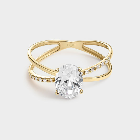 ANILLO ORO AMARILLO 18K DOBLE HILERA TOPACIO OVAL Y CIRCONITAS