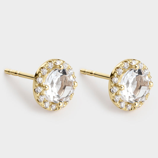 PENDIENTES ORO AMARILLO 18K TOPACIO BLANCO CENTRAL Y CIRCONITAS