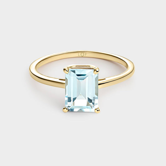 ANILLO ORO AMARILLO 18K TOPACIO AZUL OCTOGONAL PEQ.