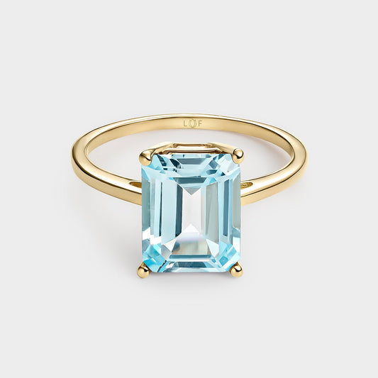 ANILLO ORO AMARILLO 18K TOPACIO AZUL OCTOGONAL
