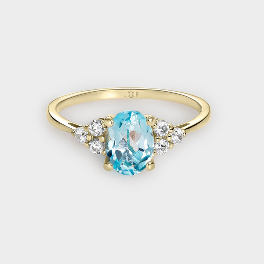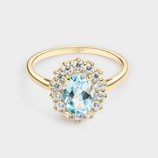 ANILLO ORO AMARILLO 18K TOPACIO OVAL Y CIRCONITAS