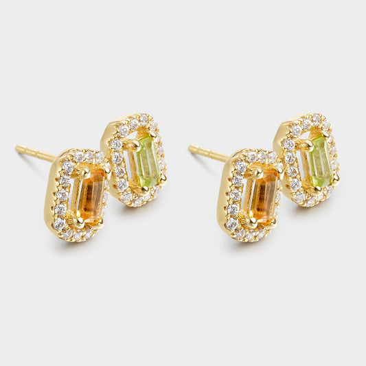 PENDIENTES ORO AMARILLO 18K DOBLES BARRETA CITRINO Y PERIDOTO