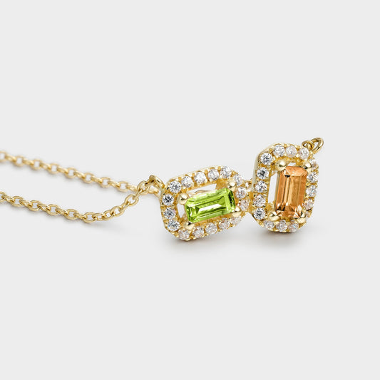 COLLAR ORO AMARILLO 18K DOBLE CITRINO Y PERIDOTO