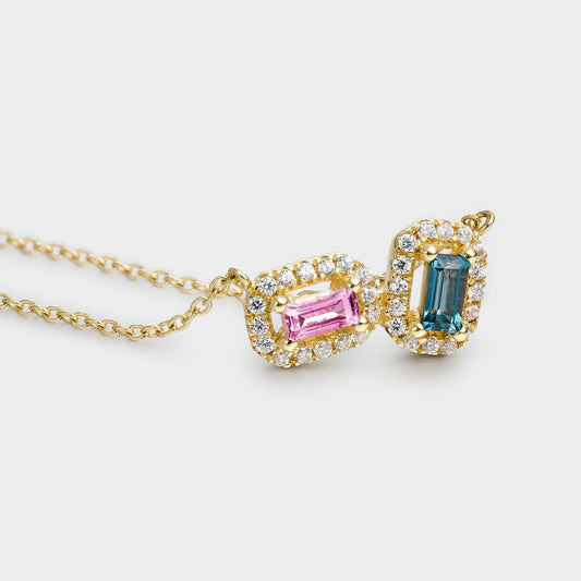 COLLAR ORO AMARILLO 18K DOBLE TOPACIO LONDON Y TOPACIO ROSA
