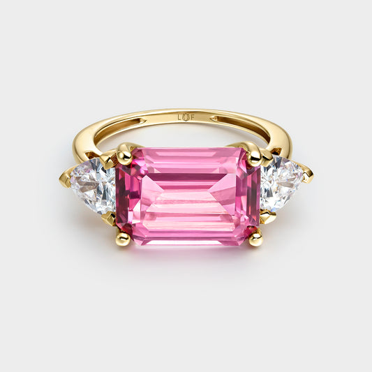 ANILLO ORO AMARILLO 18K TOPACIO ROSA Y CIRCONITAS