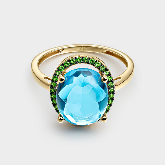 ANILLO ORO AMARILLO 18K NANO-ZAFIROS Y TOPACIO AZUL SWISS