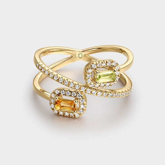 ANILLO ORO AMARILLO 18K DOBLE CITRINO Y PERIDOTO