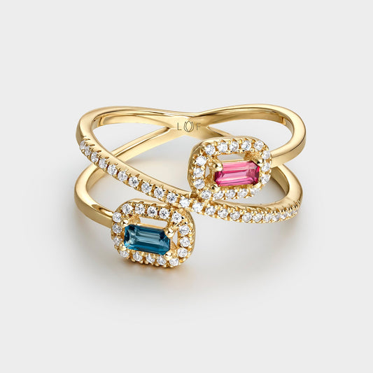 ANILLO ORO AMARILLO 18K DOBLE TOPACIO LONDON Y TOPACIO ROSA