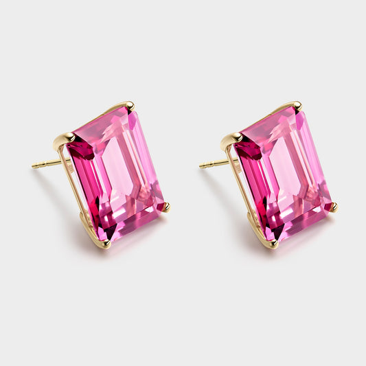PENDIENTES ORO AMARILLO 18K TOPACIO ROSA OCTOGONAL