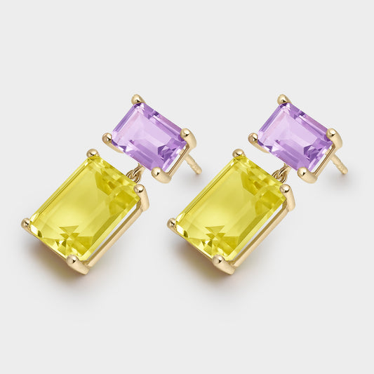 PENDIENTES ORO AMARILLO 18K AMATISTA Y CUARZO LIMON