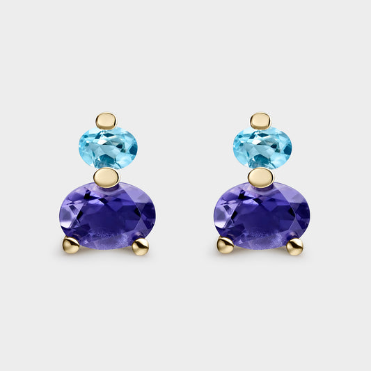 PENDIENTES ORO AMARILLO DE 18K TOPACIOS SWISS Y IOLITAS