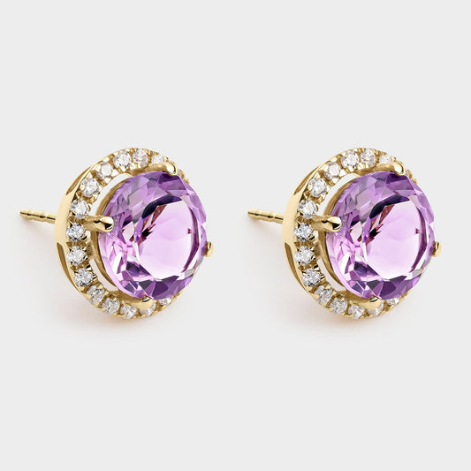 PENDIENTES ORO AMARILLO 18K AMATISTA CENTRAL Y CIRCONITAS