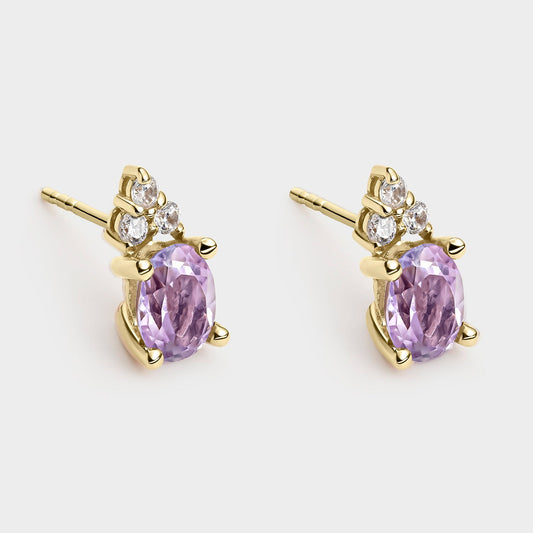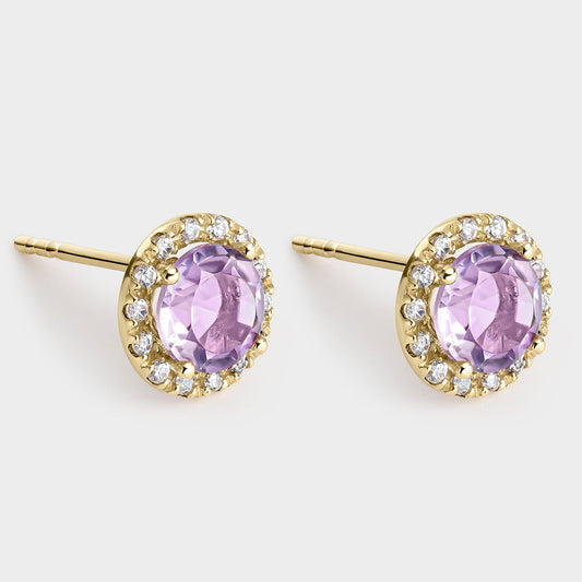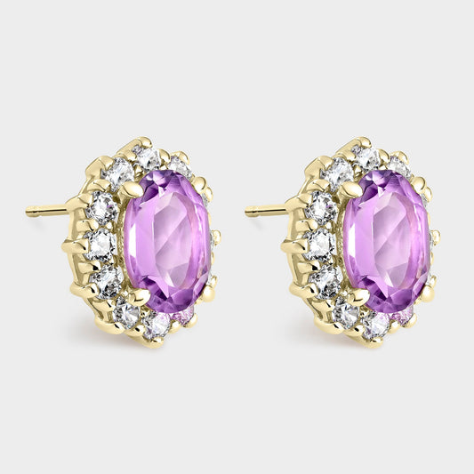 PENDIENTES ORO AMARILLO 18K AMATISTA OVAL Y CIRCONITAS