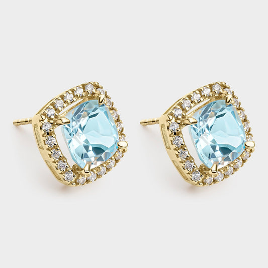 PENDIENTES ORO AMARILLO 18K TOPACIO CUSHION Y CIRCONITAS
