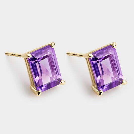 PENDIENTES ORO AMARILLO 18K AMATISTA OCTOGONAL