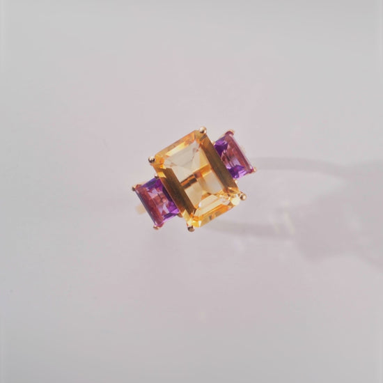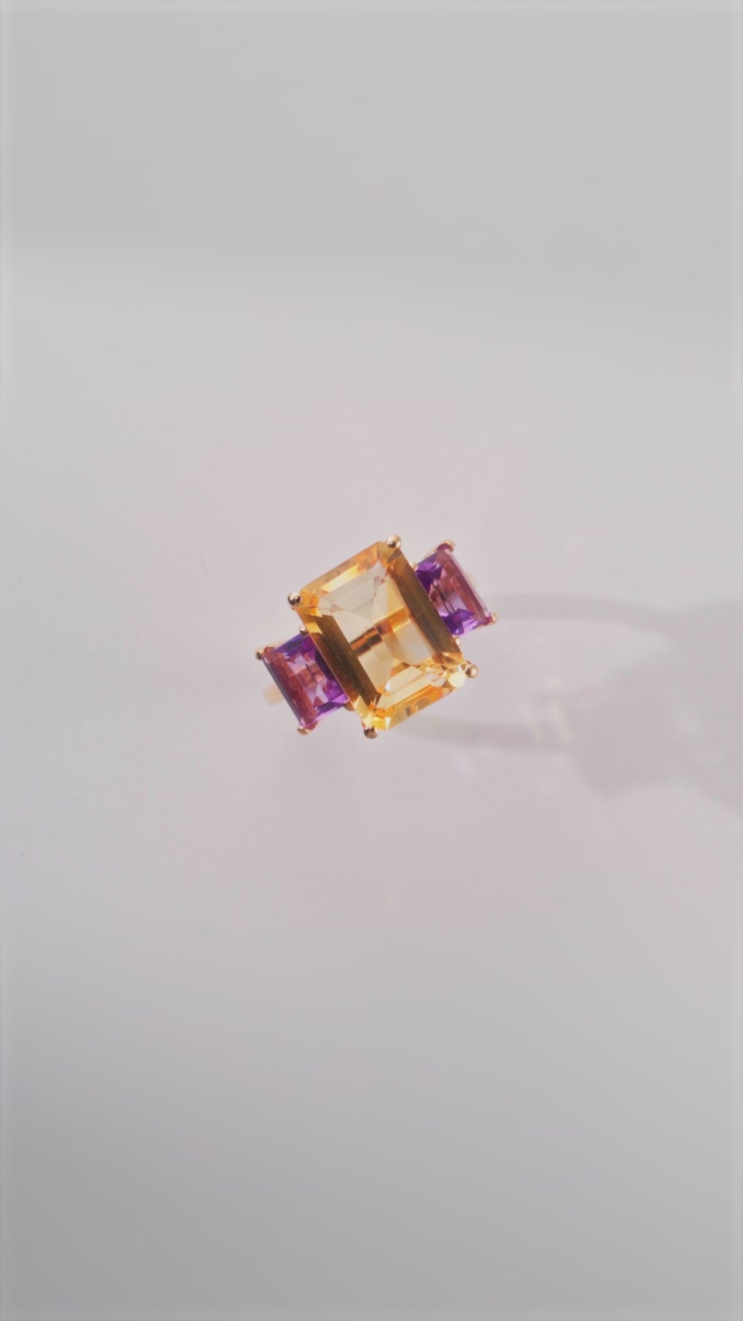 ANILLO ORO AMARILLO 18K CITRINO Y AMATISTAS OCTOGONALES