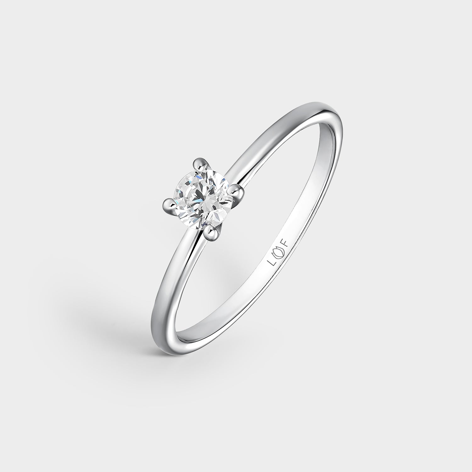 Anillo solitario en Oro Blanco de 18K con 1 diamante calidad GVS central de 0.25 ct.