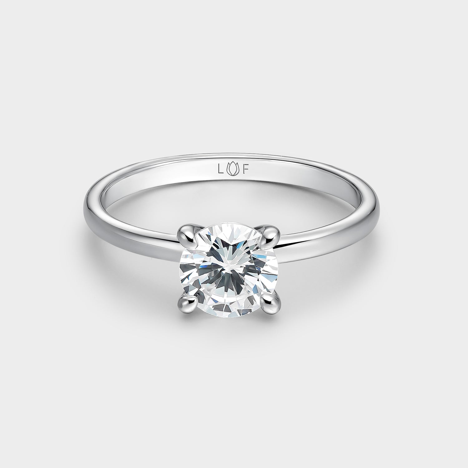 Anillo solitario en Oro Blanco de 18K con 1 diamante calidad GVS central de 1 ct.
