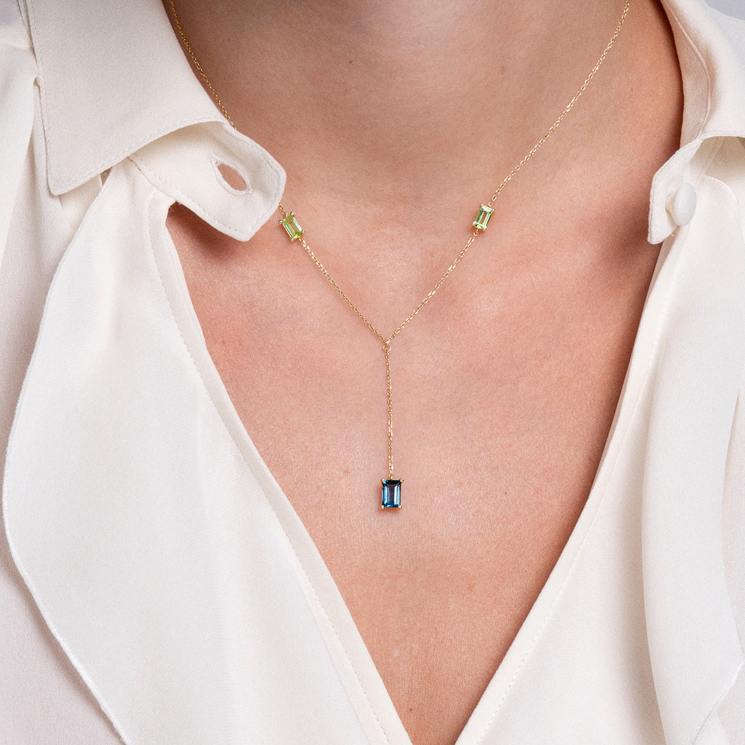 COLLAR ORO AMARILLO 18K TOPACIO LONDON Y PERIDOTOS BAGUETTE
