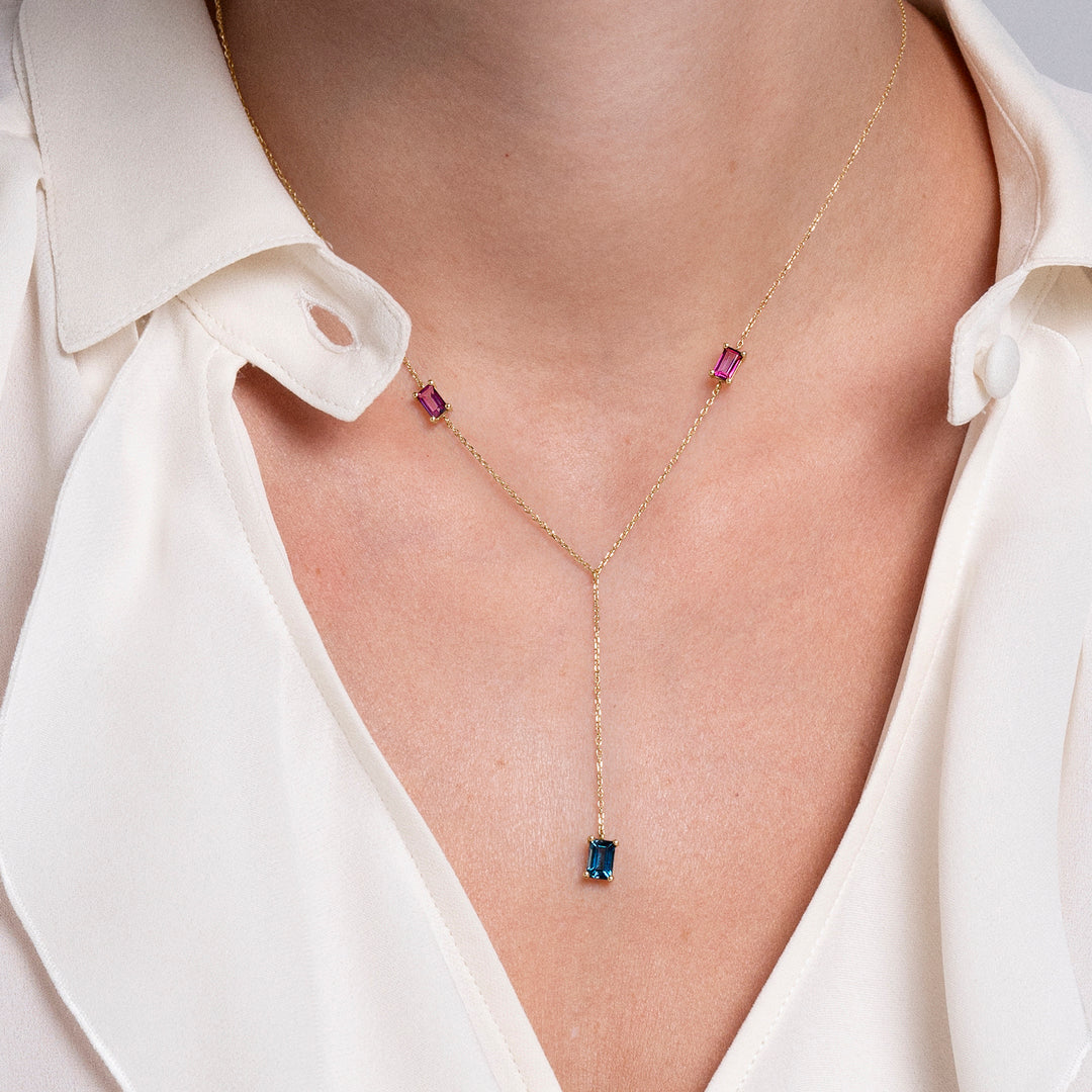 COLLAR ORO AMARILLO DE 18K TOPACIO LONDON Y TOPACIOS ROSAS BAGUETTE