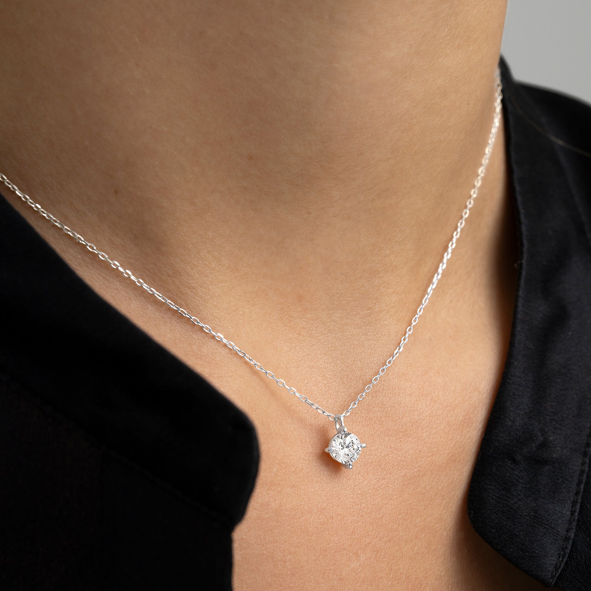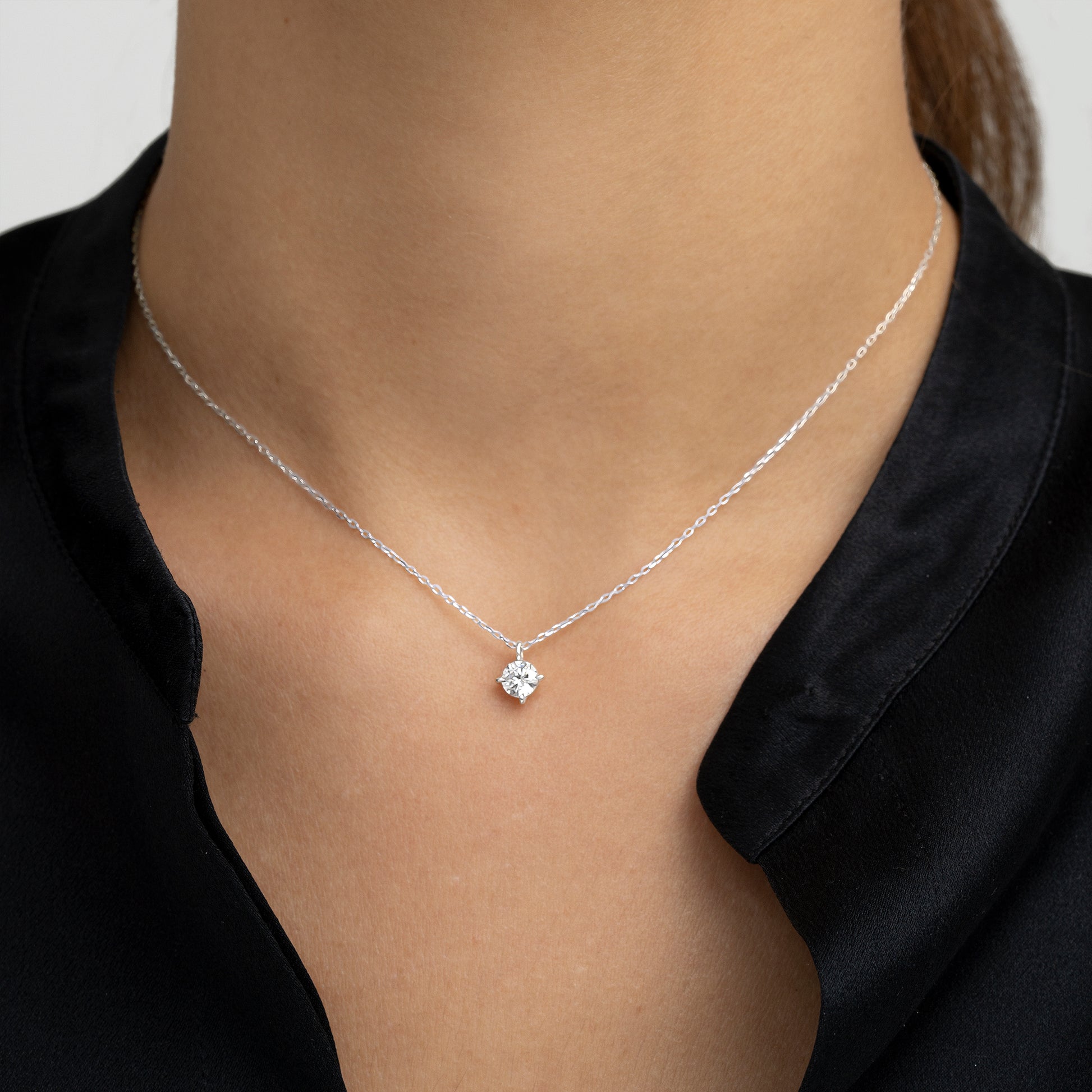 Collar en Oro Blanco de 18K con diamante central de calidad GVS de 0,50 cts.