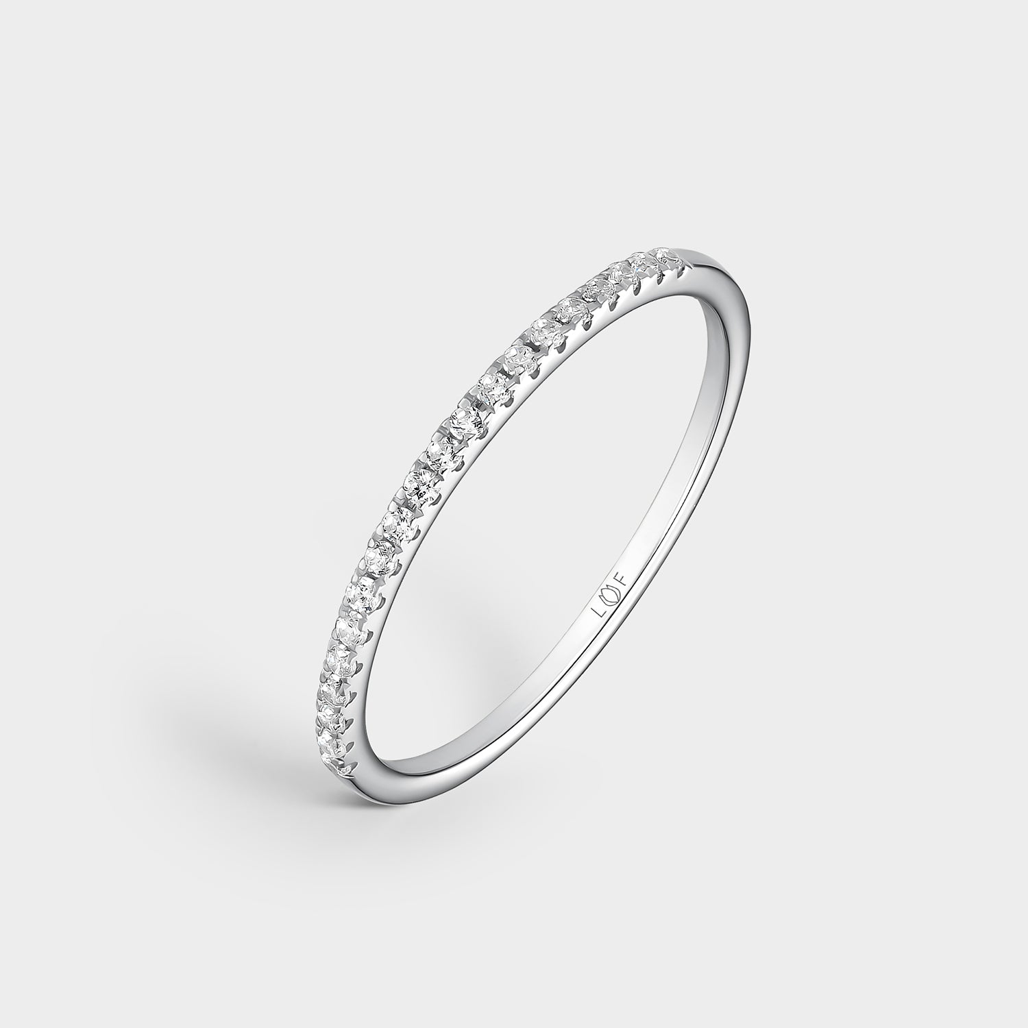 Anillo media alianza en Oro Blanco de 18K con 20 diamantes de calidad GVS de 0,12 cts.
