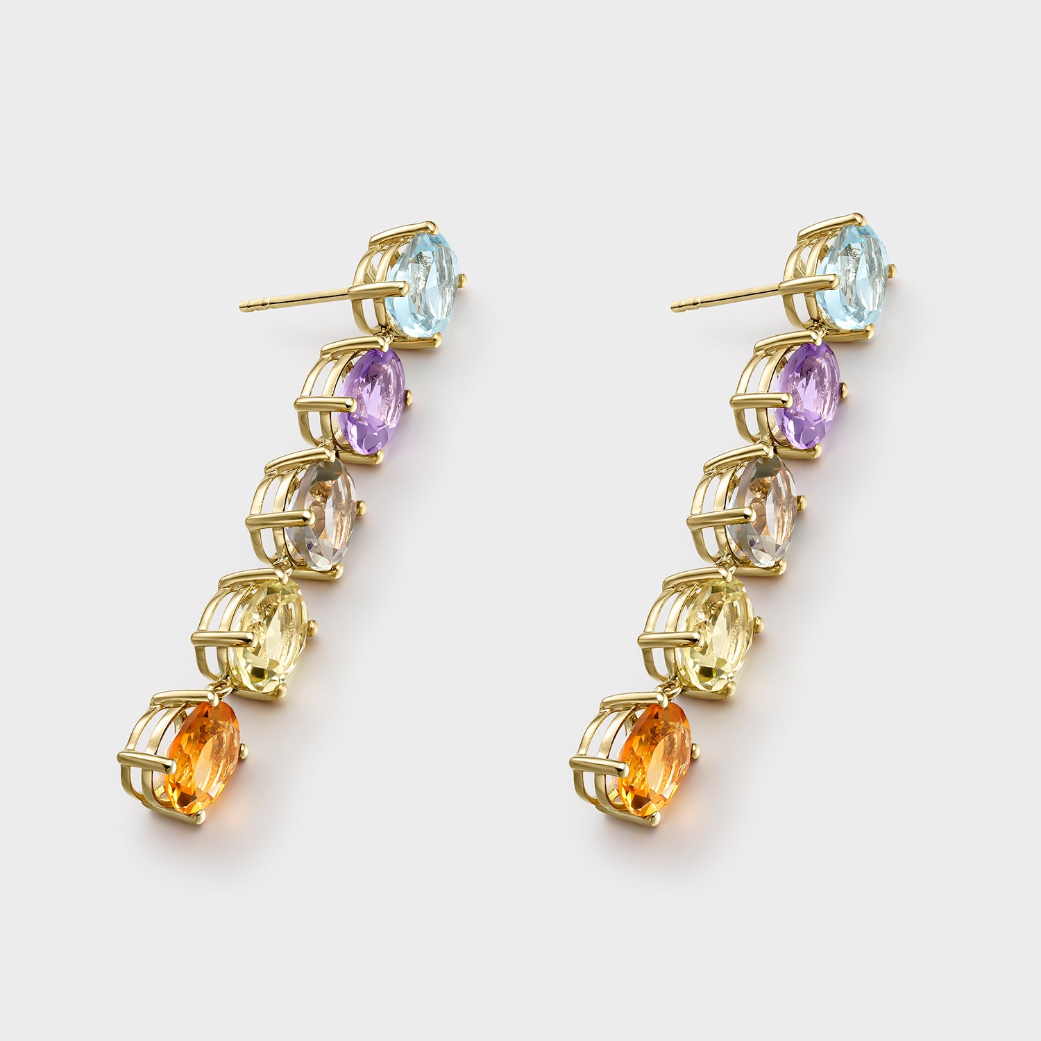 PENDIENTES ORO AMARILLO 18 KTS TOPACIO AZUL, AMATISTA, AMATISTA VERDE, CUARZO LIMON Y CITRINO