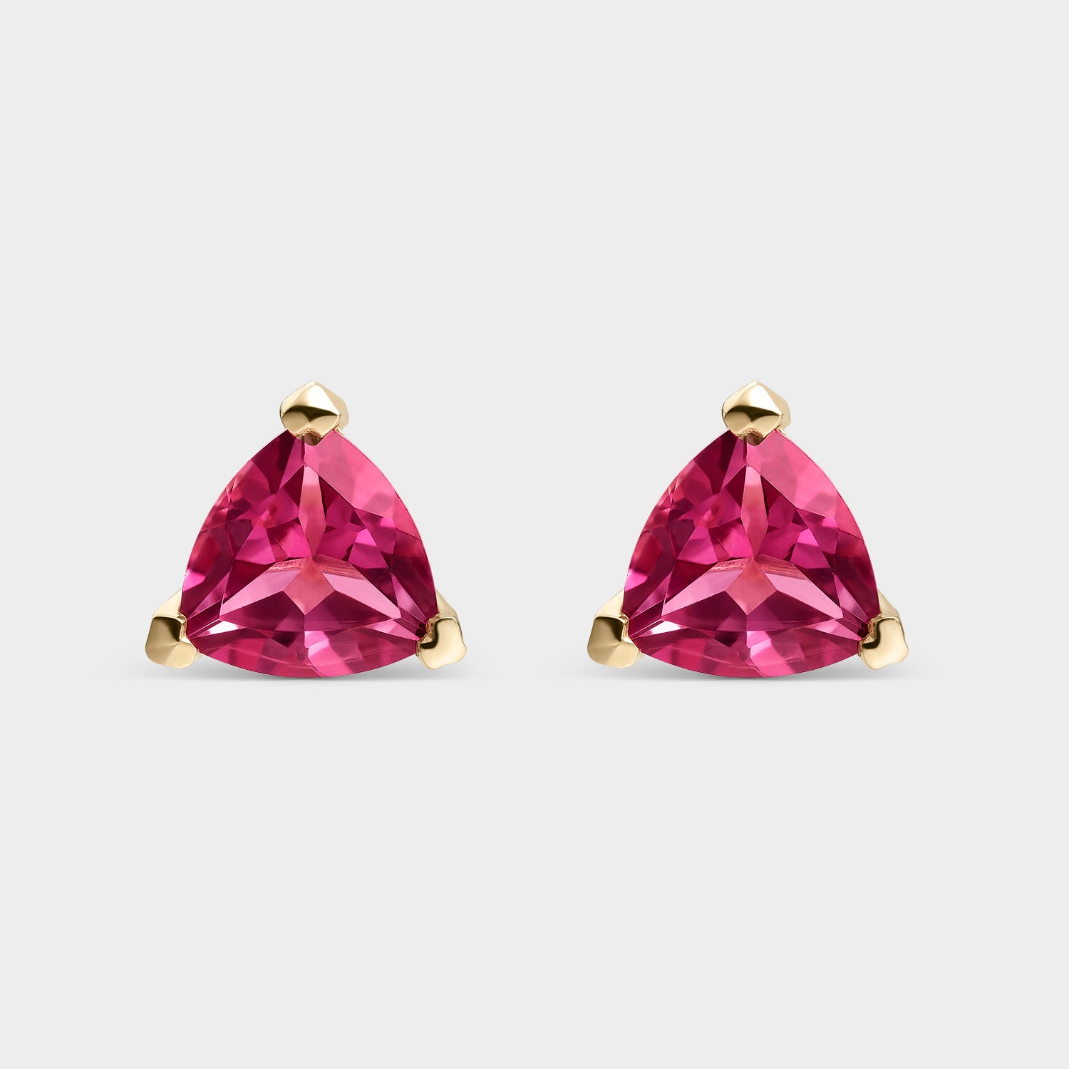 Estos pendientes de oro amarillo 18K presentan un impresionante topacio rosa trillón de 7x7 mm (2,98 cts), que captura la luz con un brillo fascinante. Su diseño audaz y elegante realza cualquier look, aportando un toque de sofisticación y color vibrante. Perfectos para quienes buscan destacar con una joya única y llena de personalidad.