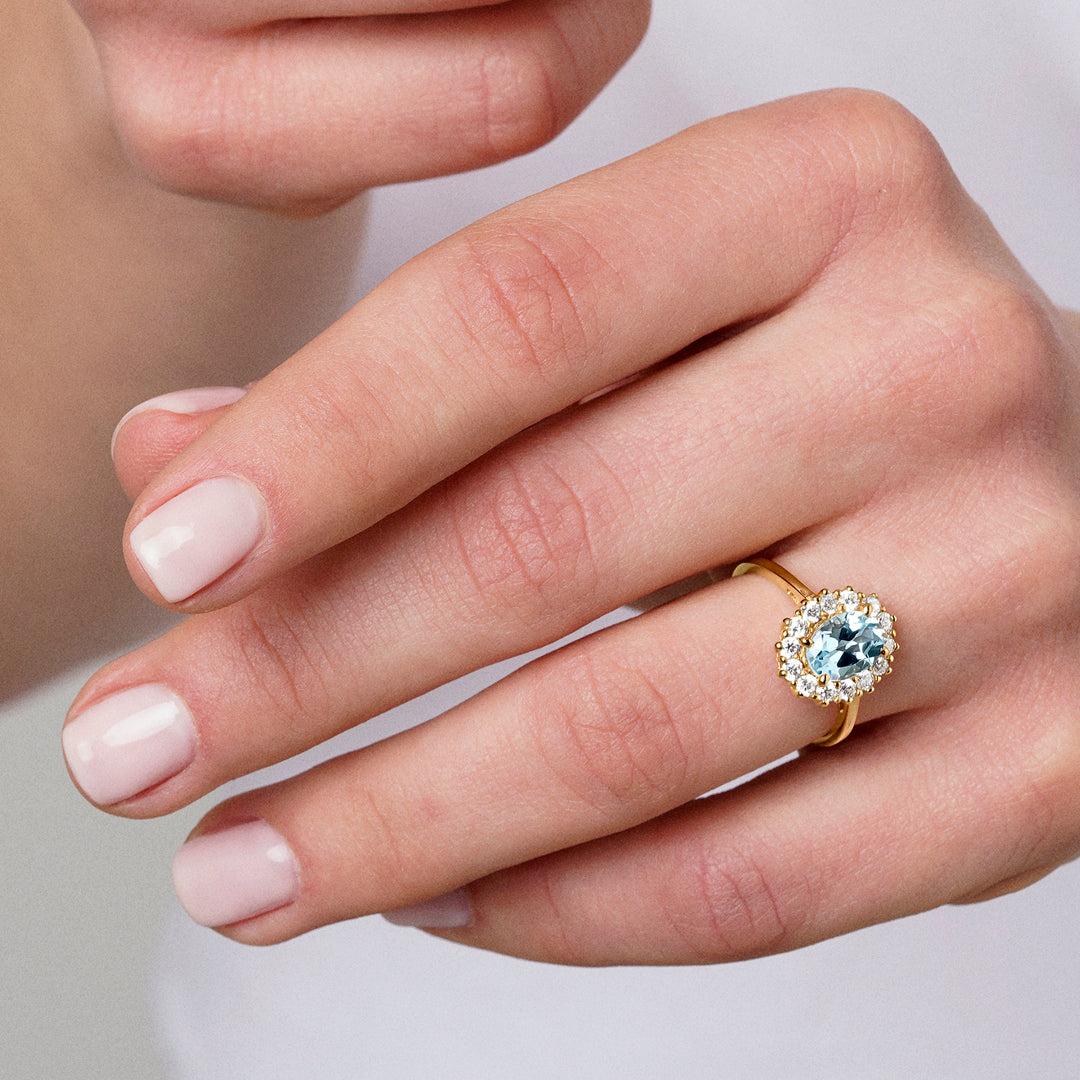 ANILLO ORO AMARILLO 18K TOPACIO OVAL Y CIRCONITAS
